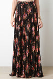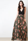 This maxi skirt features semi-sheer chiffon, accordion pleats, floral pattern, and elasticized waist. Accessories sold separately. Made in USA. 100% Polyester.