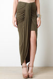 This maxi skirt features soft jersey knit, draped tulip design, open front, and mini skirt underlay. Accessories sold separately. Made in USA. 95% Rayon, 5% Spandex.