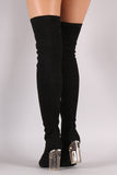Suede Chunky Lucite Heeled Over-The-Knee Boots
