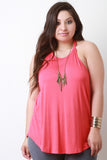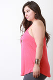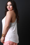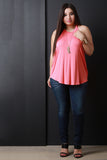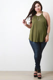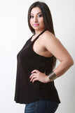 This plus size top features soft jersey knit round neckline, racer back, and relaxed fit. Accessories sold separately. Made in U.S.A. 95% Rayon, 5% Spandex.