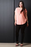 This plus size top features a jersey knit fabrication, round neckline, cap sleeves design, and curved hemline. Accessories sold separately. Made in U.S.A. 95% Rayon, 5% Spandex.