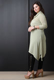 This plus size top features a cowl neckline, quarter-length sleeves, trapeze cut fit, asymmetrical hemline, and side vent slits. Accessories sold separately. Made in U.S.A. 95% Polyester, 5% Spandex.