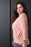 This plus size loose knit top features a v-neckline, dolman sleeves design, center seams detail, and sharkbite hemline. Accessories sold separately. Made in U.S.A. 48% Polyester, 48% Rayon, 4% Spandex.