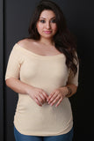 This plus size top features an off the shoulder neckline, short sleeves, gathered material on sides and finished with a thermal knit fabrication. Accessories sold separately. 97% Rayon, 3% Spandex.