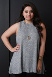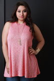 This plus size top features ribbed melange knit throughout, sleeveless construction, a round neckline and finished with a relaxed fit. Accessories sold separately. 88% Rayon, 12% Polyester.
