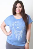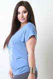 This plus size graphic tee features soft knit fabrication, round neckline, short sleeve construction , Moon graphics that reads"Love By The Moon" and pleated sides. Accessories sold separately. 97% Rayon, 3% Spandex.