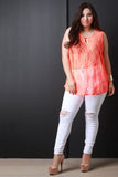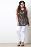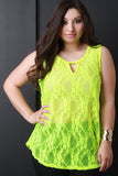 This alluring lace fabrication, round neck with keyhole detail at front, sleeveless construction, and curved hem. Accessories sold separately. Made in U.S.A. 92% Polyester, 8% Spandex.