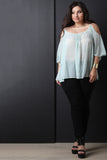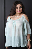 This plus size top features lightweight semi-sheer fabric, kaleidoscope pattern, lightly ruched scoop neckline, open shoulders, and 3/4 sleeves. Accessories sold separately. Made in U.S.A. 100% Polyester.