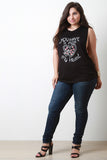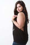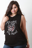 This plus size tank top features a round neckline, low cut armholes, soft knit fabrication, with a rounded back hemline, relaxed fit and a cute graphic print that says "You have a pizza my heart". Accessories sold separately. Made in U.S.A. 95% Rayon, 5% Spandex.