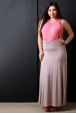 This plus size top features a ribbed knit fabrication, round neckline, and sleeveless construction with crochet trim detail. Accessories sold separately. Made in U.S.A. Self: 95% Rayon, 5% Spandex. Lining: 100% Polyester.