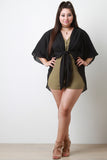 This plus size top features semi-sheer chiffon, self-tie front, short slit dolman sleeves, and high-low hemline. Accessories sold separately. Made in USA. 100% Polyester.