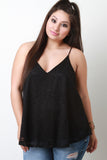 This cami top features a paisley lace overlay at front, sleeveless, v-neckline, spaghetti shoulder straps, and a relax a-line cut. Accessories sold separately. Made in U.S.A. 90% Nylon, 10% Spandex. Contrast: 100% Polyester.