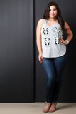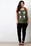 This cutesy plus size top features a jersey knit fabric, weekend panda graphic print, scoop neckline, and sleeveless construction. Finished with a rounded hemline and elasticized racerback. Accessories sold separately. Made in U.S.A. 97% Rayon, 3% Spandex.