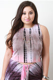 This plus size top features a round neckline, sleeveless, and tie dye print on soft jersey knit fabrication. Accessories sold separately. Made in U.S.A. 95% Rayon, 5% Spandex.