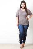 This plus size top features a marled knit fabric, v-neckline, cold shoulder with dolman sleeves, and ruched side detail. Includes a choker necklace. Accessories sold separately. Made in U.S.A. 95% Polyester, 5% Spandex.