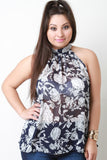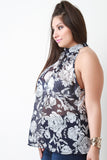 This plus size top features a chiffon fabric designed with floral print throughout, mock neckline with double button closure at nape, and open back. Accessories sold separately. Made in U.S.A. 100% Polyester.