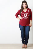 This plus size hoodie top features a v-neckline, drawstring d�cor, soft jersey knit fabrication, and California Republic screen print at front. Accessories sold separately. Made in U.S.A. 88% Rayon, 12% Polyester. Contrast: 97% Rayon, 3% Spandex.