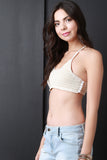 This top is strappy cut racerback construction with five buttons on the side for closure. The front portion is lined with a scoop neck. Accessories sold separately. 100% Cotton.