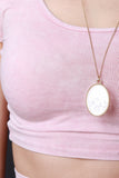 This casual top features a faded jersey knit fabrication, cap sleeve construction, and scoop neckline. Finished with a cropped hemline. Accessories sold separately. Made in U.S.A. 95% Cotton, 5% Lycra.