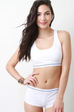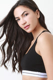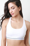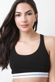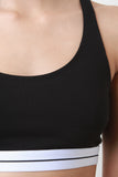 This sporty bralette features a contrast band, soft knit fabrication and a racer back cut. Accessories sold separately. 95% Cotton 5% Spandex.