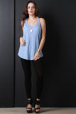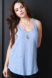 This casual racerback tank top features a marled jersey knit fabrication, round neckline, holes and distressed design, and sleeveless construction with a bias tape finish. Accessories sold separately. Made in U.S.A. 100% Cotton.