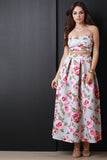 This tube top features a scuba knit fabrication with rose pattern print, sweetheart neckline, cropped hemline, and rear zip-up closure. Accessories sold separately. Made in U.S.A. 96% Polyester, 4% Spandex.