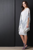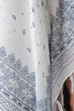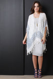 This poncho features woven fabrication, bandanna style paisley print, kimono style sleeve, open front, square cut and a fringe tassel trim hem. Accessories sold separately. 100% Viscose.