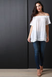 Bardot Fringe Trim Top