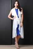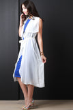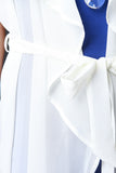This longline vest features a semi-sheer chiffon fabrication, open waterfall front, and a self-tie waist sash. Accessories sold separately. Made in U.S.A. 100% Polyester.