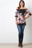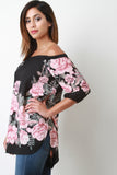 This lovely top features a beautiful floral prints, elasticized off-the-shoulder neckline, elbow sleeves with elastic cuff, double side slits detail, and rounded high low hem. Accessories sold separately. 100% Polyester.
