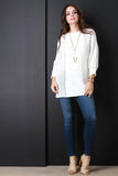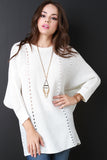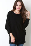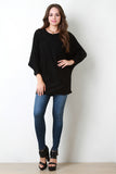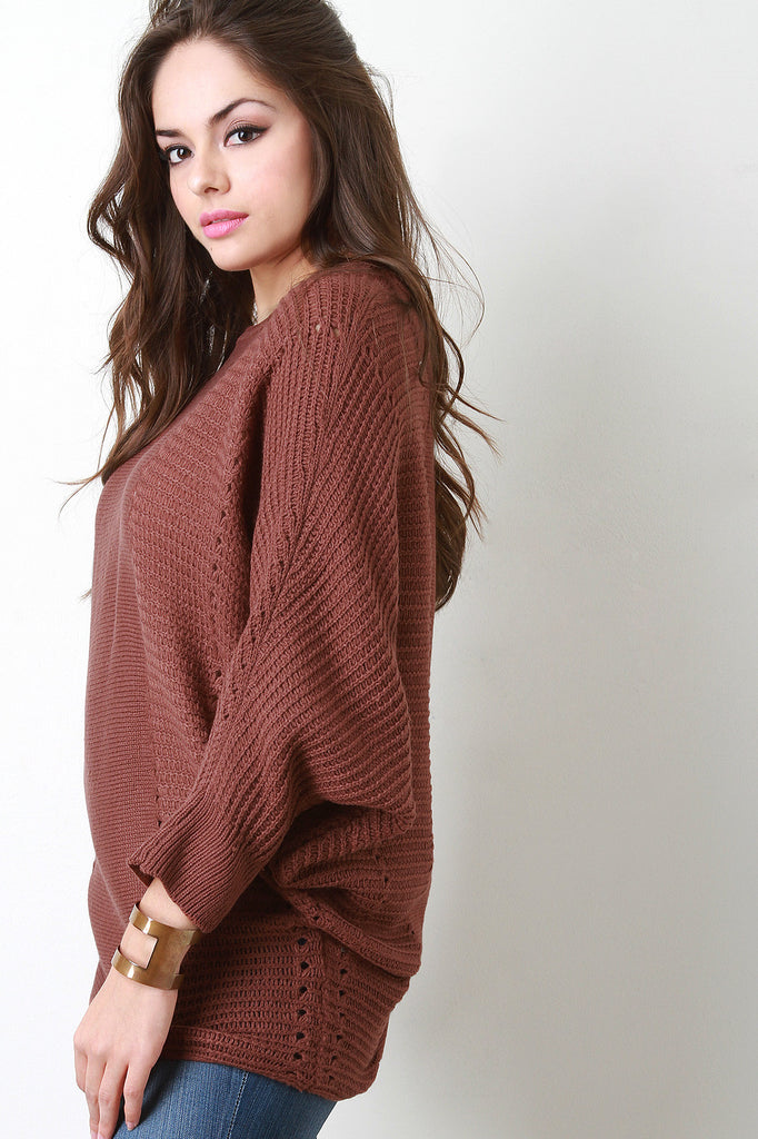 This over-sized sweater features contrasting knit design, rounded neckline, bat wing style sleeves, baggy silhouette, and a slightly long hemline. Accessories sold separately. 65% Acrylic, 20% Polyester, 15% Nylon.
