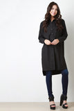 This classic collared shirt features a woven fabric, button-up construction, single-button longsleeves, and longline silhouette. Finished with a high-low hemline with two side and one back slits. Accessories sold separately. 100% Cotton.