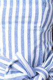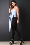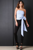 This strapless top features an elasticized tube neckline, zipper back, self-tie bow d�cor at hem, chambray vertical stripes, and partially lined. Made in U.S.A. 100% Cotton.