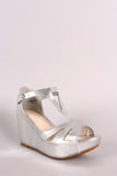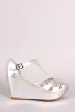 Bamboo Metallic Cutout Peep Toe Platform Wedge