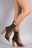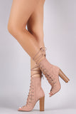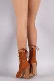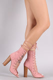Liliana Suede Corset Lace Up Open Toe Ankle Booties