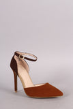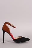 Anne Michelle Colorblock Pointy Toe Ankle Strap Pump