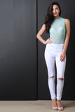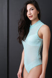 Mock Neck Semi-Sheer Mesh Bodysuit