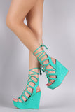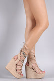 Wild Diva Lounge Suede Strappy Lace-Up Platform Wedge