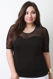 Mesh Contrast Round Neck Top