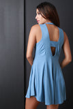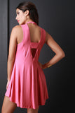 Mock Neck Deep V Back Dress