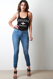 This jersey knit bodysuit features a scoop neckline, sleeveless, racerback, cheeky brief bottom, snap button closure at crotch, and Lifeguard Malibu Beach screen print at front. Accessories sold separately. Made in U.S.A. 95% Rayon, 5% Spandex.