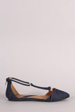 Qupid Denim Gold-Plated Hardware Embellished Pointy Toe Flat