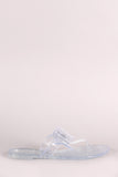 This pretty thong jelly upper, bow with rhinestone embellishments on instep strap, slight heel, and easy slip on style.