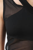 Asymmetrical One Shoulder Mesh Panel Midi Dress