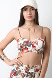 This cropped top features a slightly stretchy smooth knit fabrication with floral print throughout, sweetheart neckline, spaghetti shoulder straps, and crop hem. Accessories sold separately. Made in U.S.A. 95% Polyester, 5% Spandex.