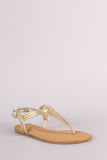 Bamboo T-Strap Thong Flat Sandal