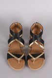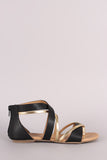 This chic flat sandal features an overlapping crisscrossed straps construction, lightly padded insole, and back-zip closure.