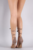 Anne Michelle Suede Tassel Lace-Up Open Toe Heel