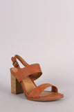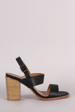 This open toe heel has two classic wide straps across the vamp, featuring a rear back adjustable strap. Distressed print design. Finished on a stacked chunky heel.