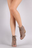 Qupid Perforated Lace Up Cutout Booties